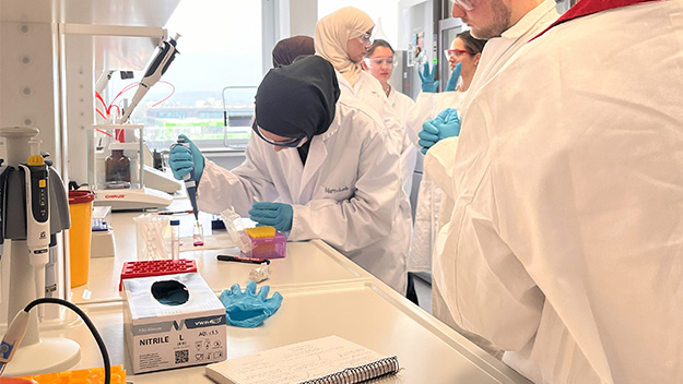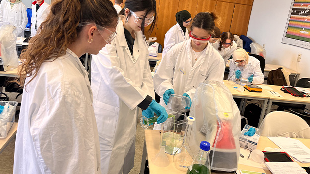Wie schon beim ersten Durchgang stand auch diesmal die nachhaltige Nutzung von Mikroalgen im Fokus: als Klimaschützer, CO₂-Speicher und potenzielle Alternative zu fossilen Ressourcen. Neben theoretischen Einblicken durch die Biologin Ruth Bier und Geowissenschaftlerin Jun.-Prof. Dr. Anne Jantschke bot der Workshop vor allem eines: viel Praxis. Unter Anleitung von Anne Jantschke, Leiterin der AG Biomineralisation/Kristallographie, und ihrem engagierten Team bauten die Teilnehmerinnen eigene Bioreaktoren, kultivierten Algen und untersuchten sie unter dem Mikroskop.