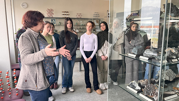 Besonders beeindruckend waren auch der Besuch im Algenzuchtlabor, Führungen durch das Vorbereitungs- und Versuchslabor sowie ein Blick in das metallfreie Isotopen-Reinigungslabor der Arbeitsgruppe Sedimentgeochemie. Apl.-Prof. Dr. Kirsten Grimm begeisterte die Schülerinnen mit spannenden Einblicken in die Mineralogische Sammlung des Instituts.